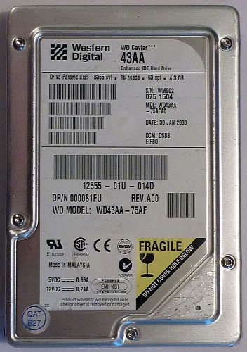 Zusammenfassung: Für Technikfreaks: 4,3GB AT HDD WD Caviar 43AA (3,5') IDE . Täglicher Versand auf Rechnung. Tolle Beigaben. 4,3GB AT HDD WD Caviar 43AA (3,5') IDE