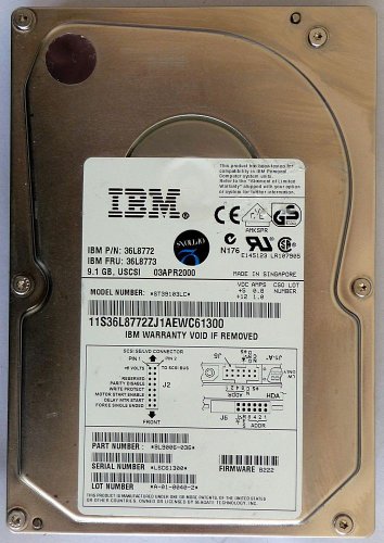 IBM p/n: 36L8772, IBM FRU: 36L8773. Anschluss 80-polig SCA, Drehzahl 10000 rpm. Mittlere Zugriffszeit 4,9ms.